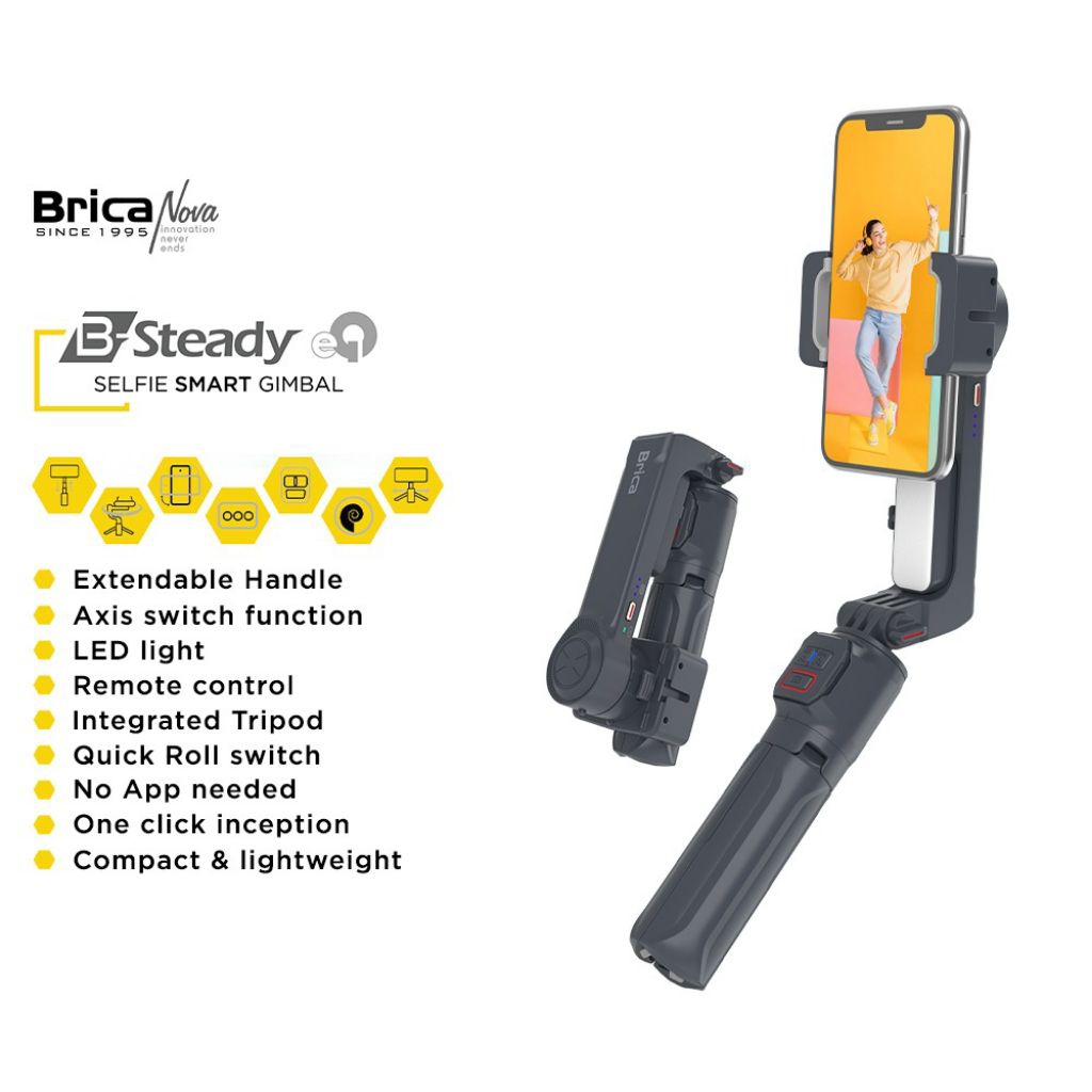 BRICA B-Steady eQ Selfie Smart Gimbal Stabilizer Brica BSteady e Q BSQ Compact Extendable Foldable 360 Rotation Resmi