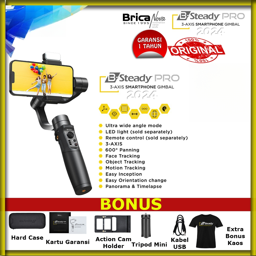 Brica BSteady PRO - 3 Aksis Stabilizer Gimbal Smartphone & Action Cam Ultra Stable Gimbal
