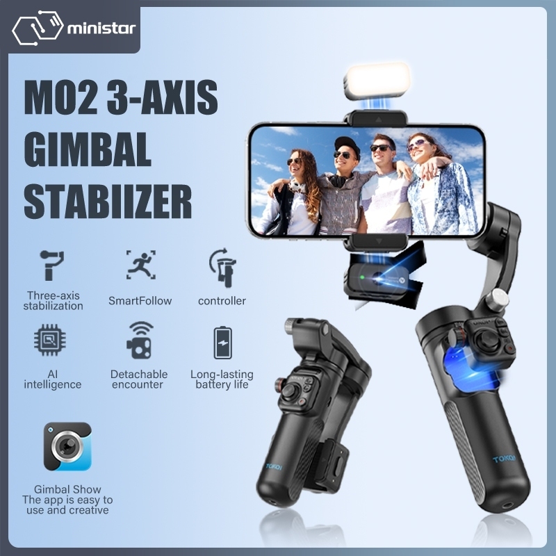 M02 Stabilizer Gimbal 3 Aksis untuk Ponsel, Stabilizer Ponsel, Stabilizer Selfie Stick