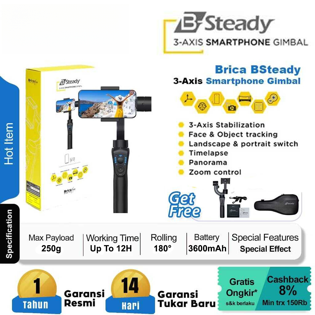 Brica B-Steady 3-Aksis Gimbal Stabilizer For Smartphone and Action Camera FREE Tri Mini