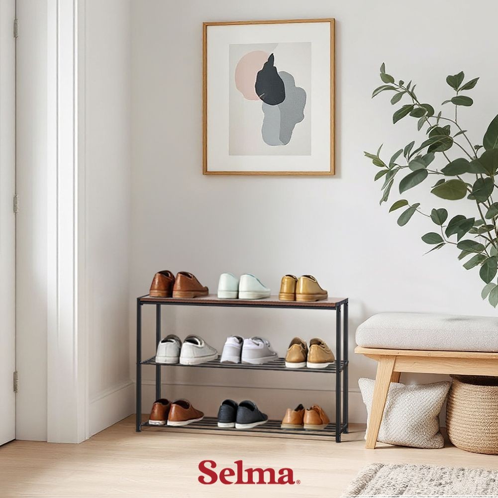 Selma Nario Rak Sepatu 3 Tingkat - Hitam/Cokelat Kayu Shoe Rack Organizer Sandal Sepatu Kabinet Alas Kaki Tempat Penyimp