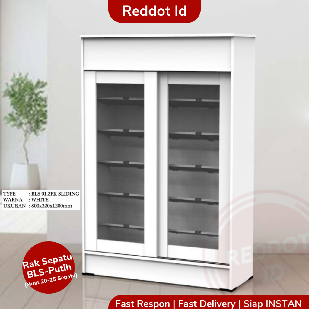 Rak Sepatu Lemari Minimalis BLS Sliding Kaca Modern dan Aesthetic 80x32x120cm