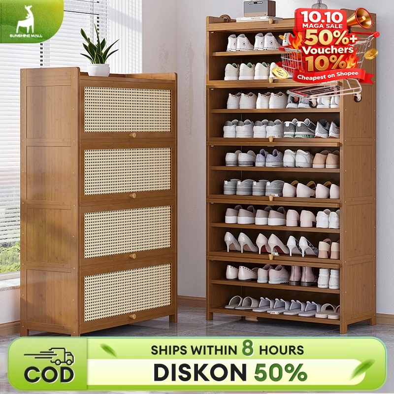 Rak Sepatu Rotan Lemari Sepatu Kayu Jaring Bernapas Rak Lemari Sepatu Tertutup Serbaguna
