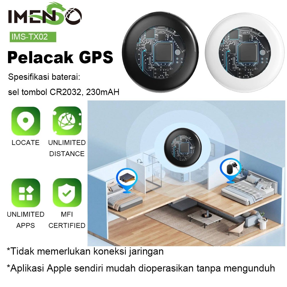 IMENSO KHUSUS APPLE IOS gps mini pelacak lokasi tracker mobil alat jarak jauh untuk motor/tas/hp