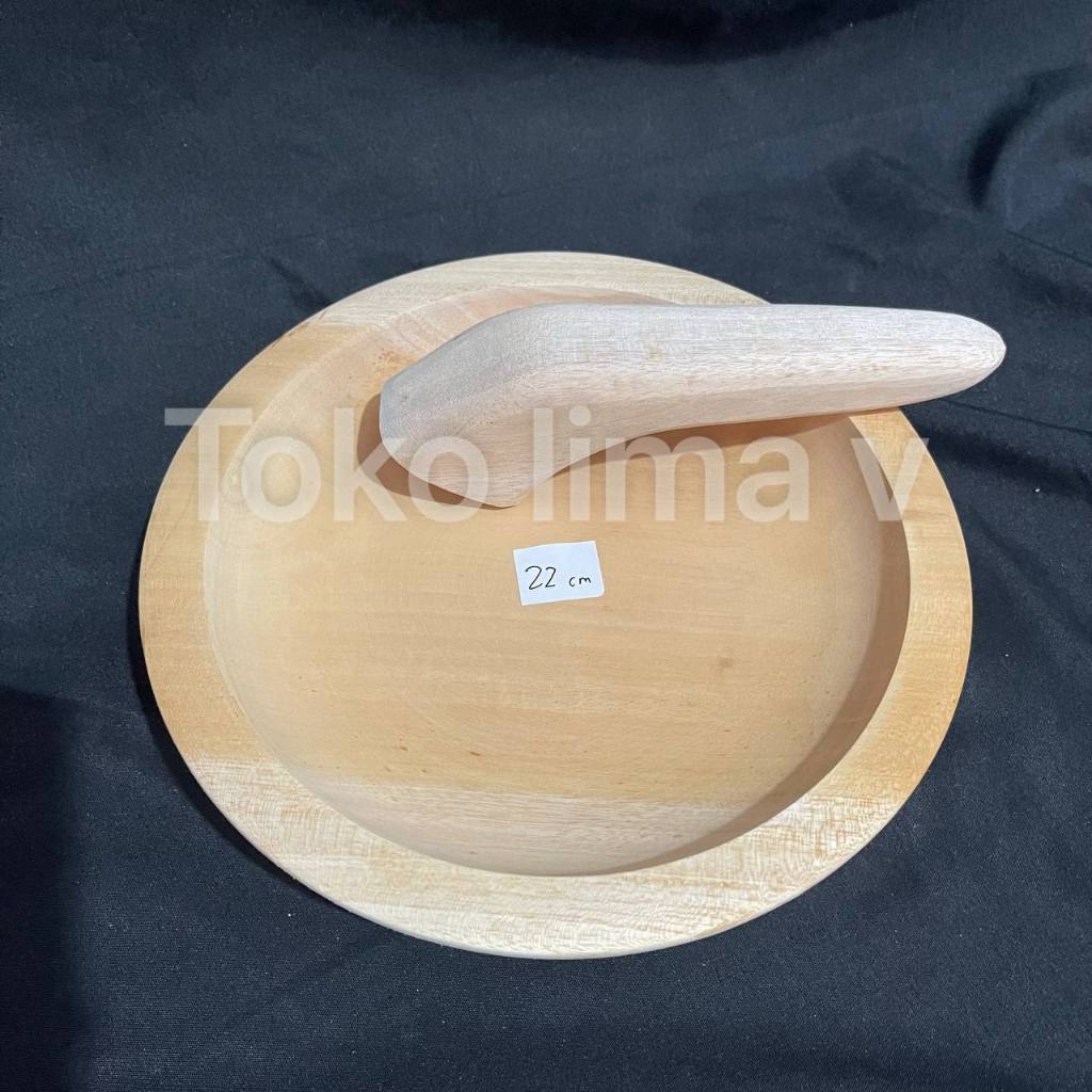 Cobek Sambel Kayu + Ulekan 1 Set Asli Berkualitas Serbaguna 16 , 14 , 13 , 11 cm Cobek Tempat Sambal