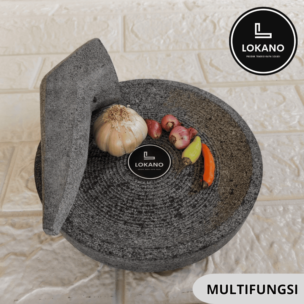 Cobek Batu Asli Ukuran 16cm Gratis Ulekan LOKANO
