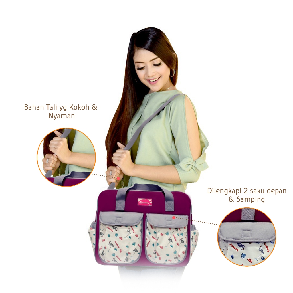 [Star] Snobby Tas Bayi Besar Diaper Bag Multifungsi Flamingo Series Aplikasi Saku Print