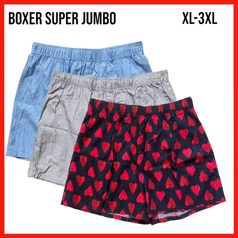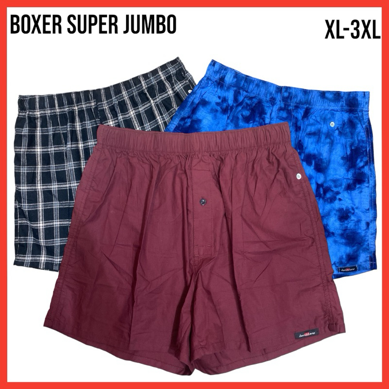 [Paket 3 Pcs] Celana Boxer Pria Jumbo size | XL | XXL | 3XL | 4XL | Bahan katun printing