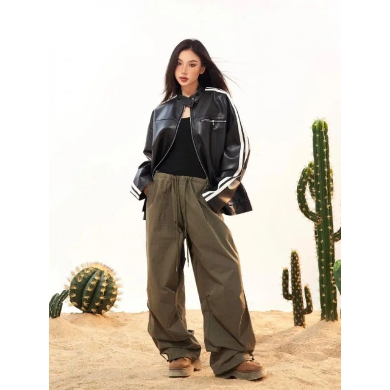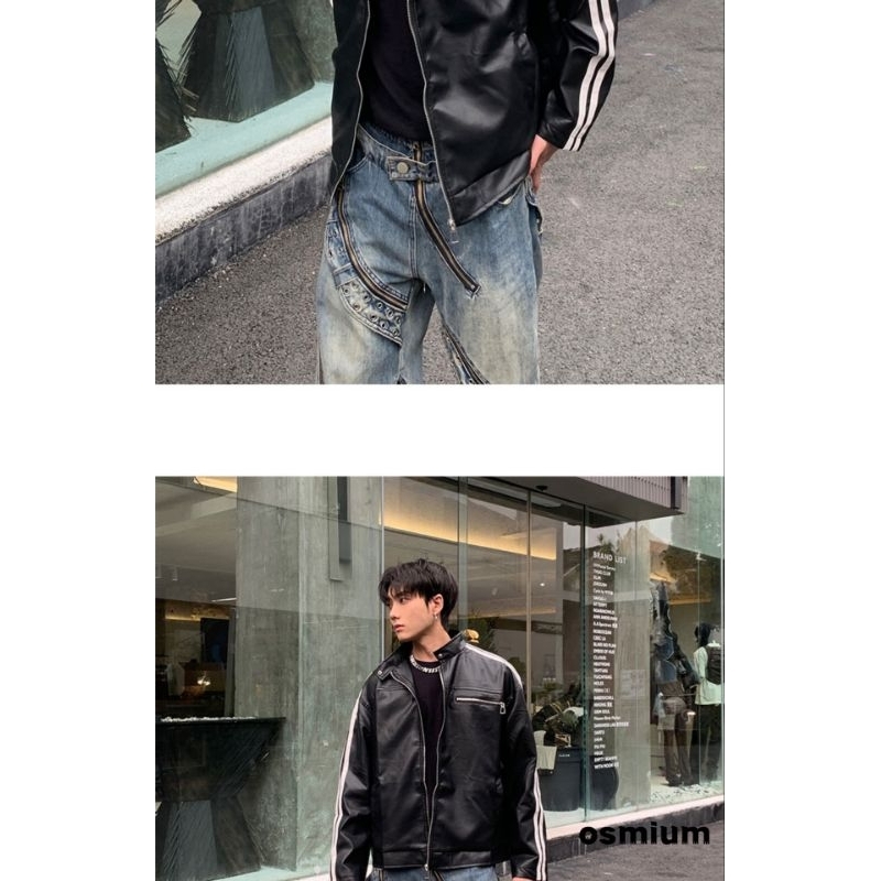 Jaket kulit UNISEX strip new casual pria dan wanita by Queen's leather