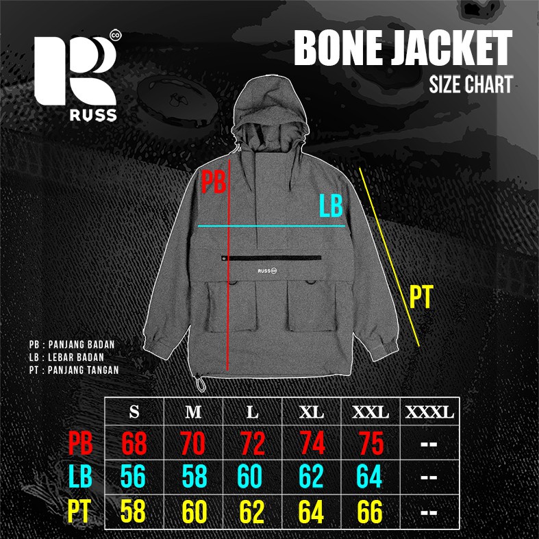 Russ Jacket Anorak Pria Bone Black ( Up To Big Size )