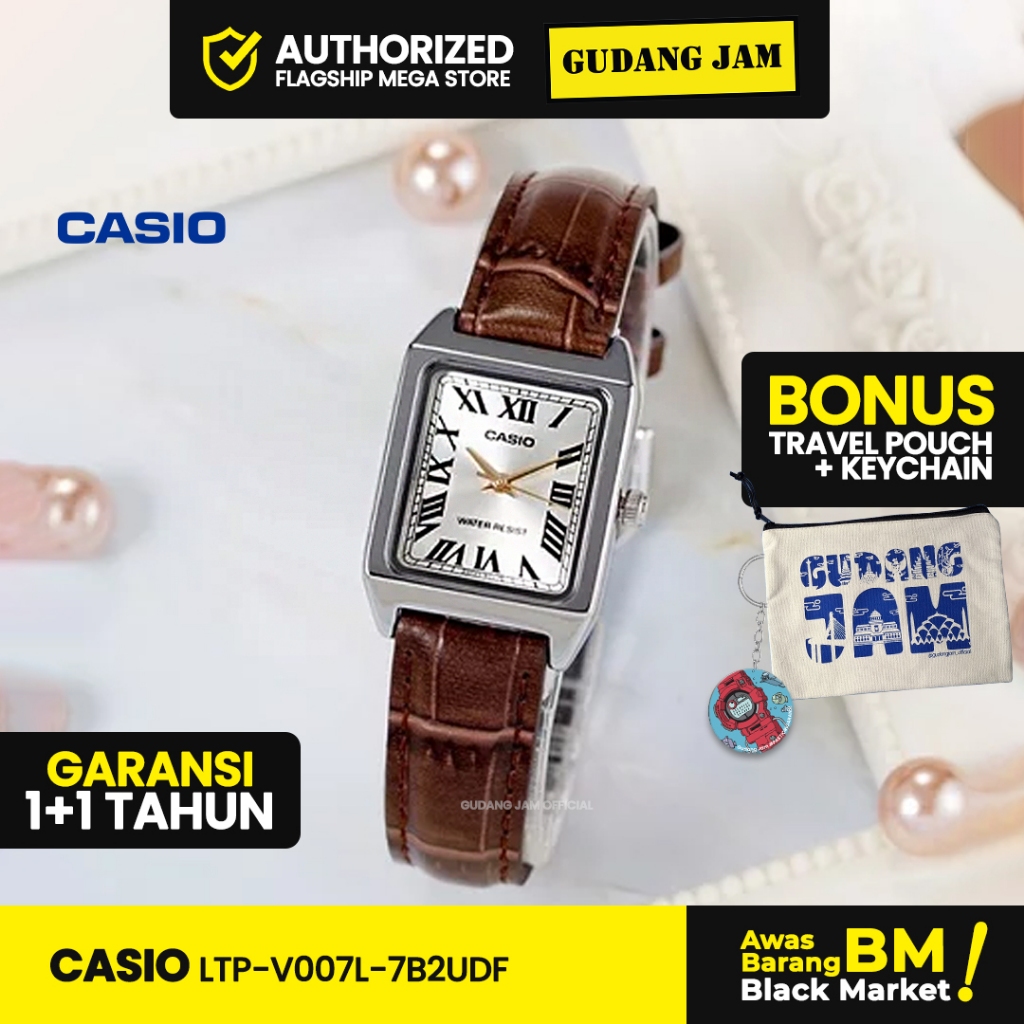 Jam Tangan Cewe Casio Tank LTP-V007L-7B2UDF Analog Leather Band