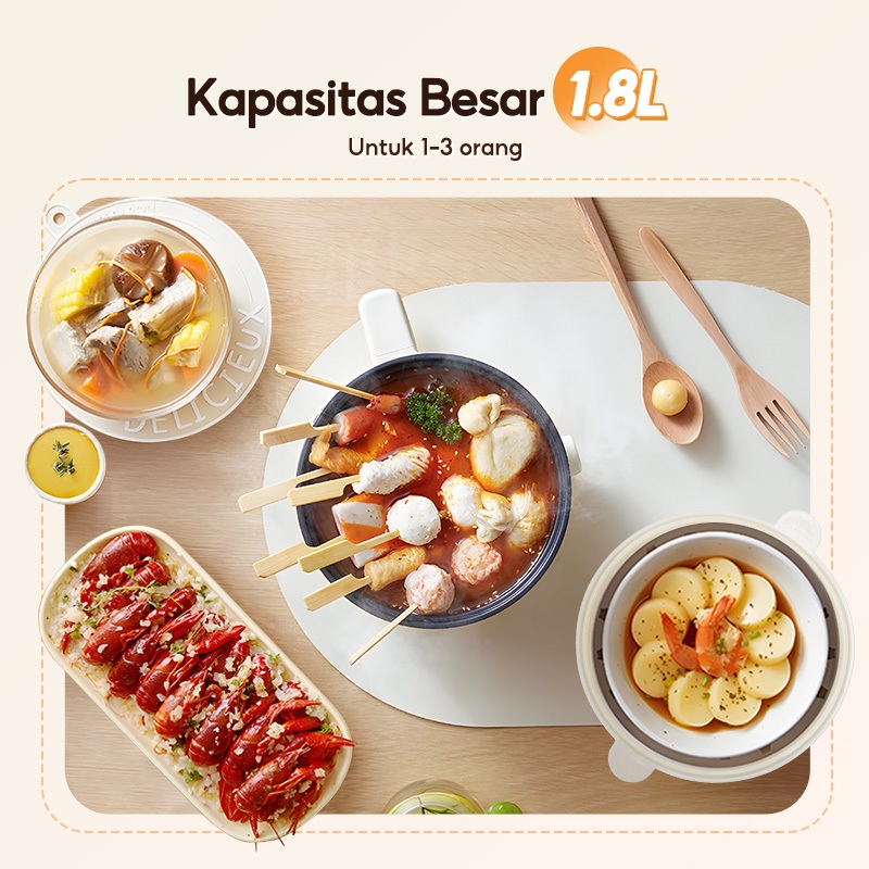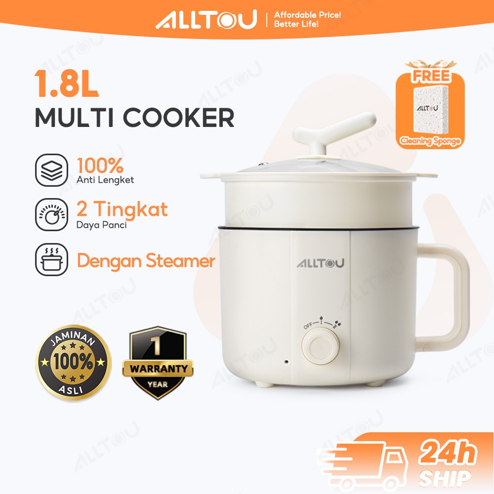 ALLTOU Panci Listrik Multifungsi 1.8L Cooker Kompor Listrik Pintar Pelajar/panci listrik/Asrama/Perjalanan Bisnis