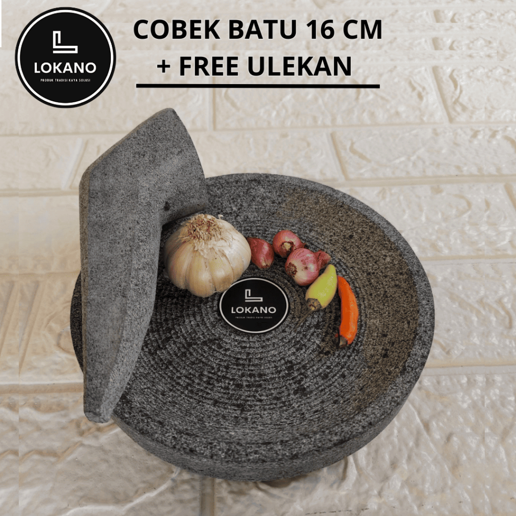 Cobek Batu Asli Ukuran 16cm Gratis Ulekan LOKANO