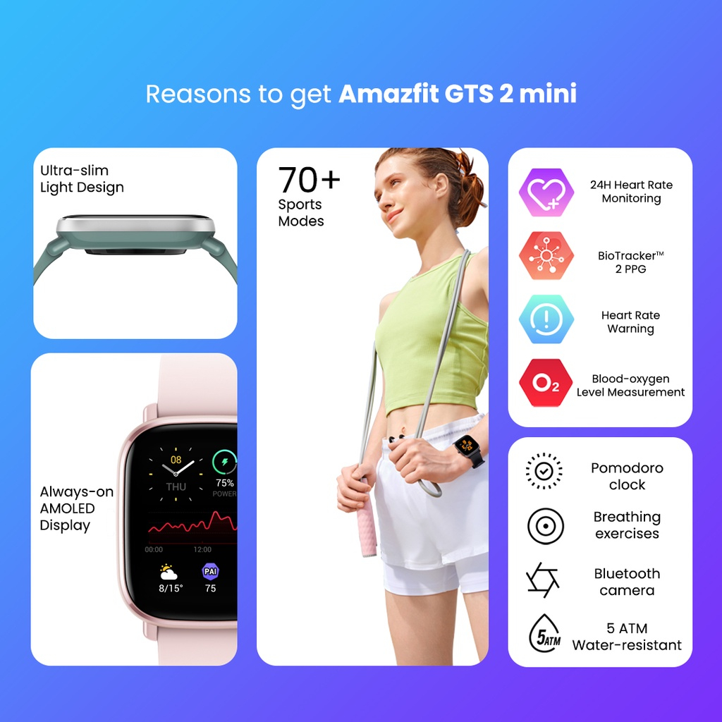 Amazfit Official GTS 2 Mini Smartwatch 1.55" AMOLED Screen GPS Jam Tangan 5 ATM Waterproof 70 Sports Modes SpO2 14 Days