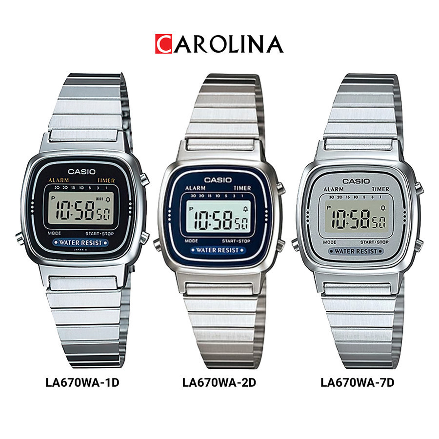 Jam Tangan Wanita Casio LA670WA-7D Digital Dial Silver Stainless Steel Band