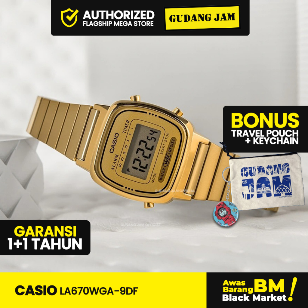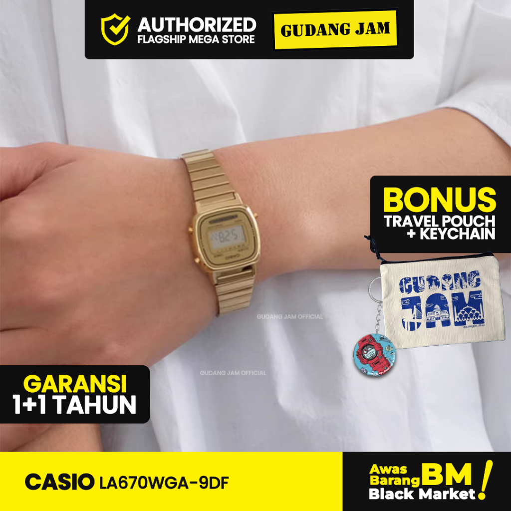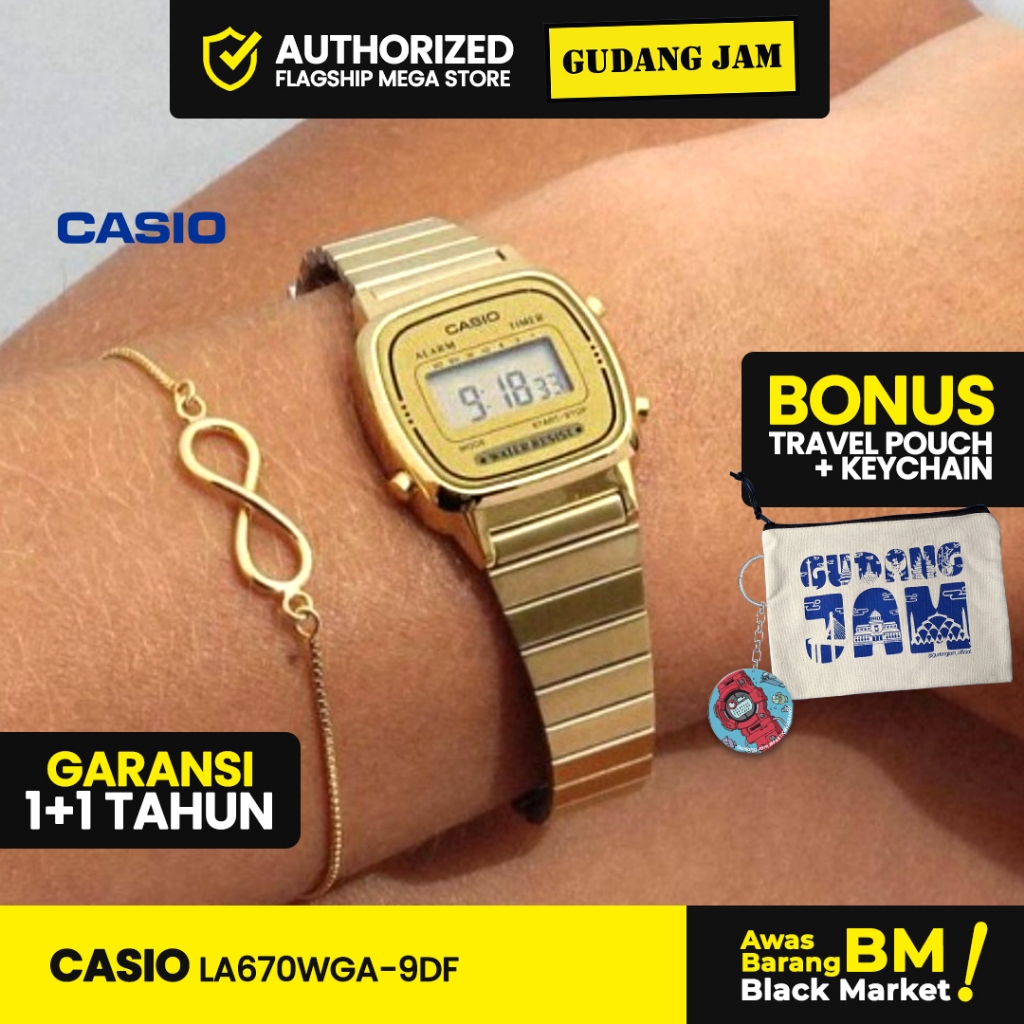 Jam Tangan Wanita Casio Official LA670WGA-9DF Digital Stainless Rantai
