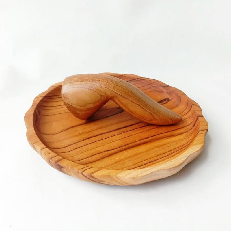 COBEK KAYU JATI SET-Cobek Kayu/Ulekan Kayu/Piring Kayu/Nampan Saji