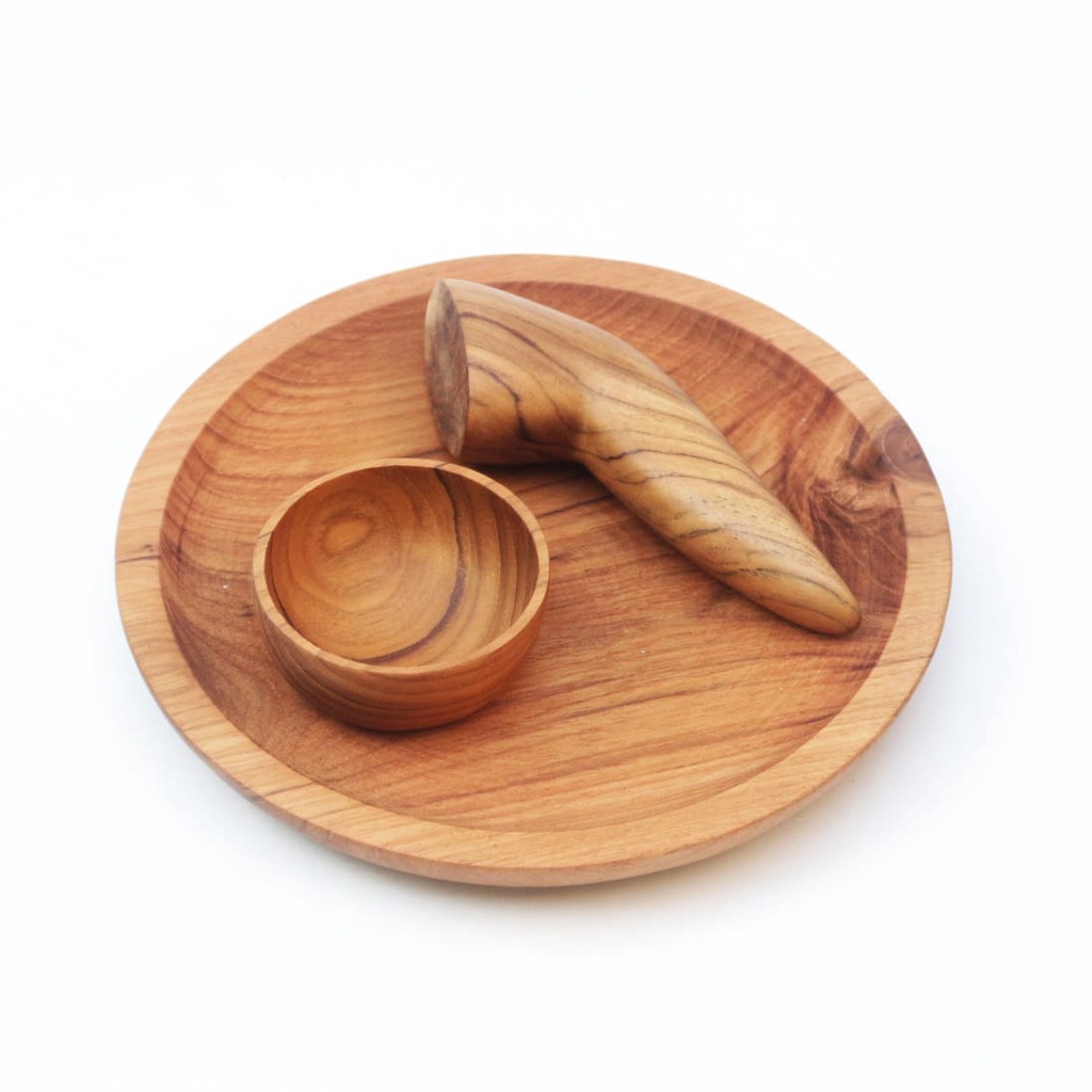 COBEK KAYU JATI SET-Cobek Kayu/Ulekan Kayu/Piring Kayu/Nampan Saji
