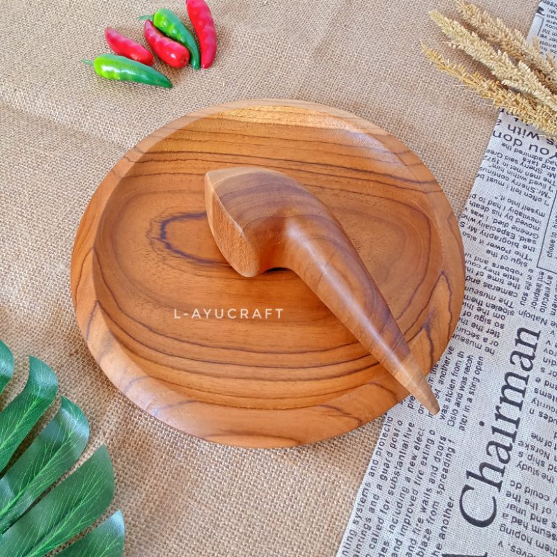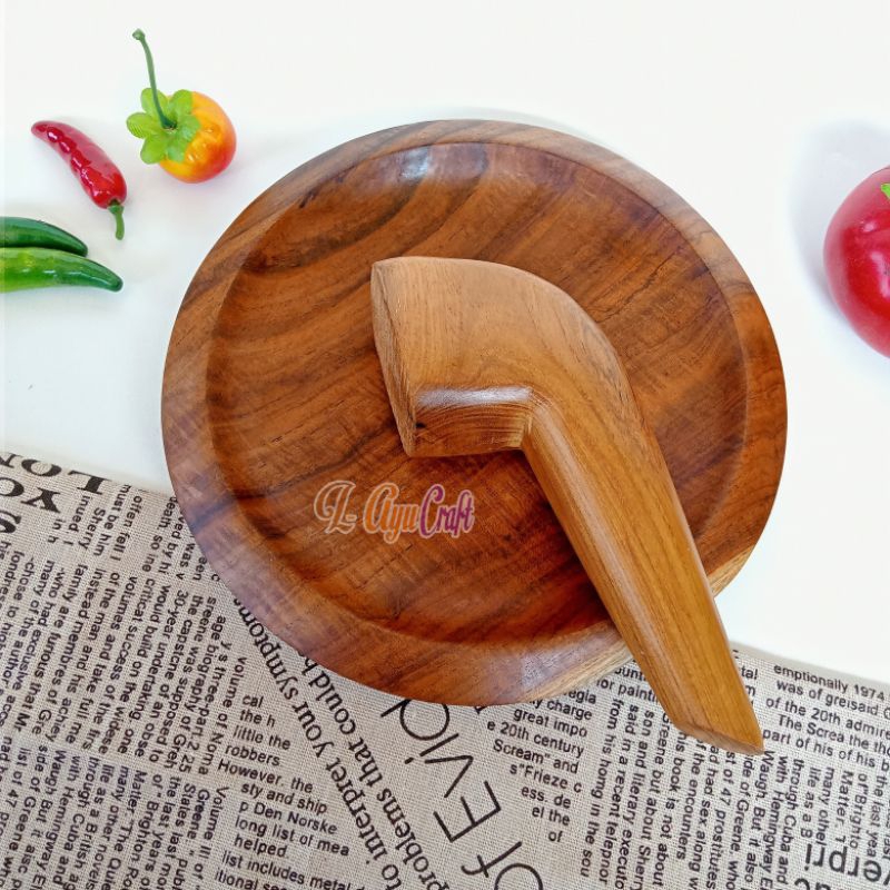 L-AYUCRAFT Cobek + uleg kayu jati bulat satu set