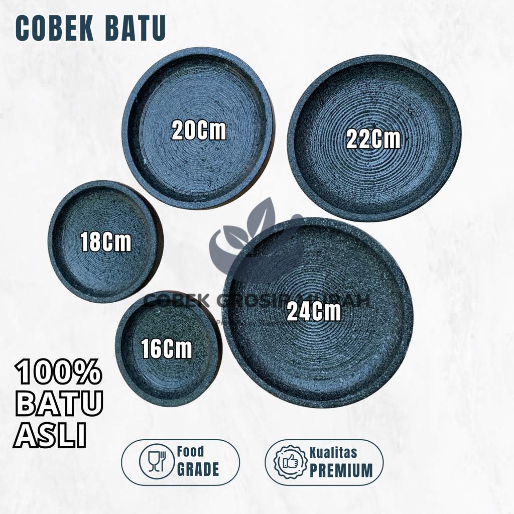 PROMO Cobek Batu Asli 16 18 20 22 24Cm Gratis Ulekan 1 Set Kualitas Super