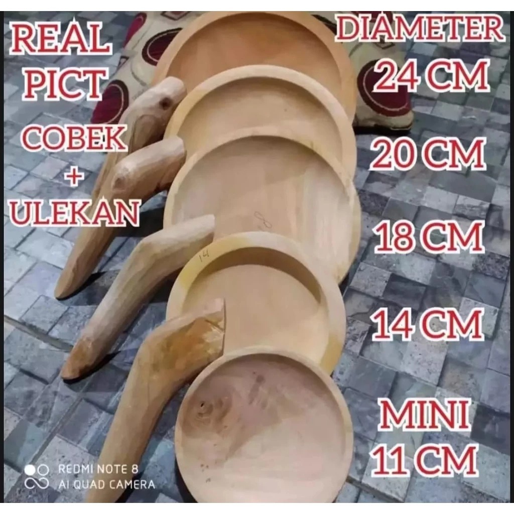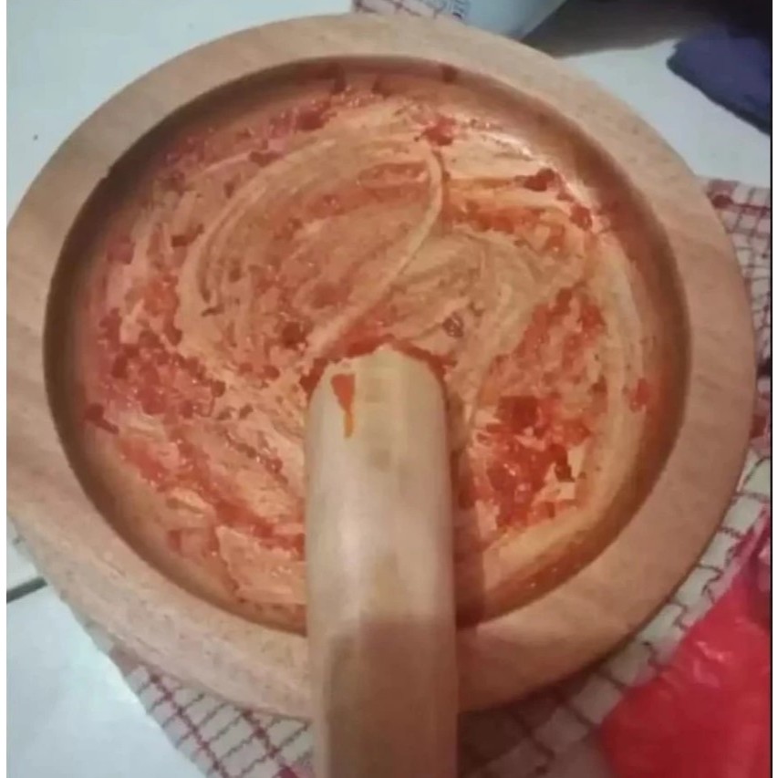Cobek kayu + ulekan ukuran 20cm