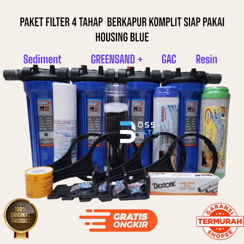 PAKET FILTER AIR 4 TAHAP / FILTER AIR AIR SUMUR ATAU PDAM - HOUSING FILTER AIR 10" (SEDIMENT-GRENSAND-GAC-RESIN)