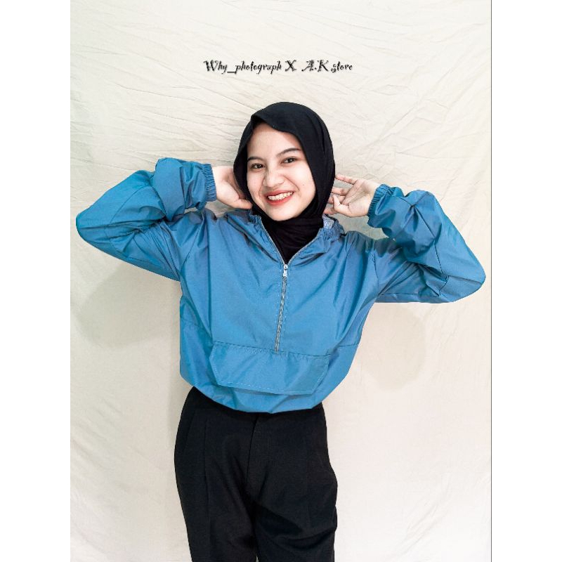 Pakaian Olahraga Jaket Olahraga Wanita Jaket Crop Wanita Saku Bahan Parasut Modis