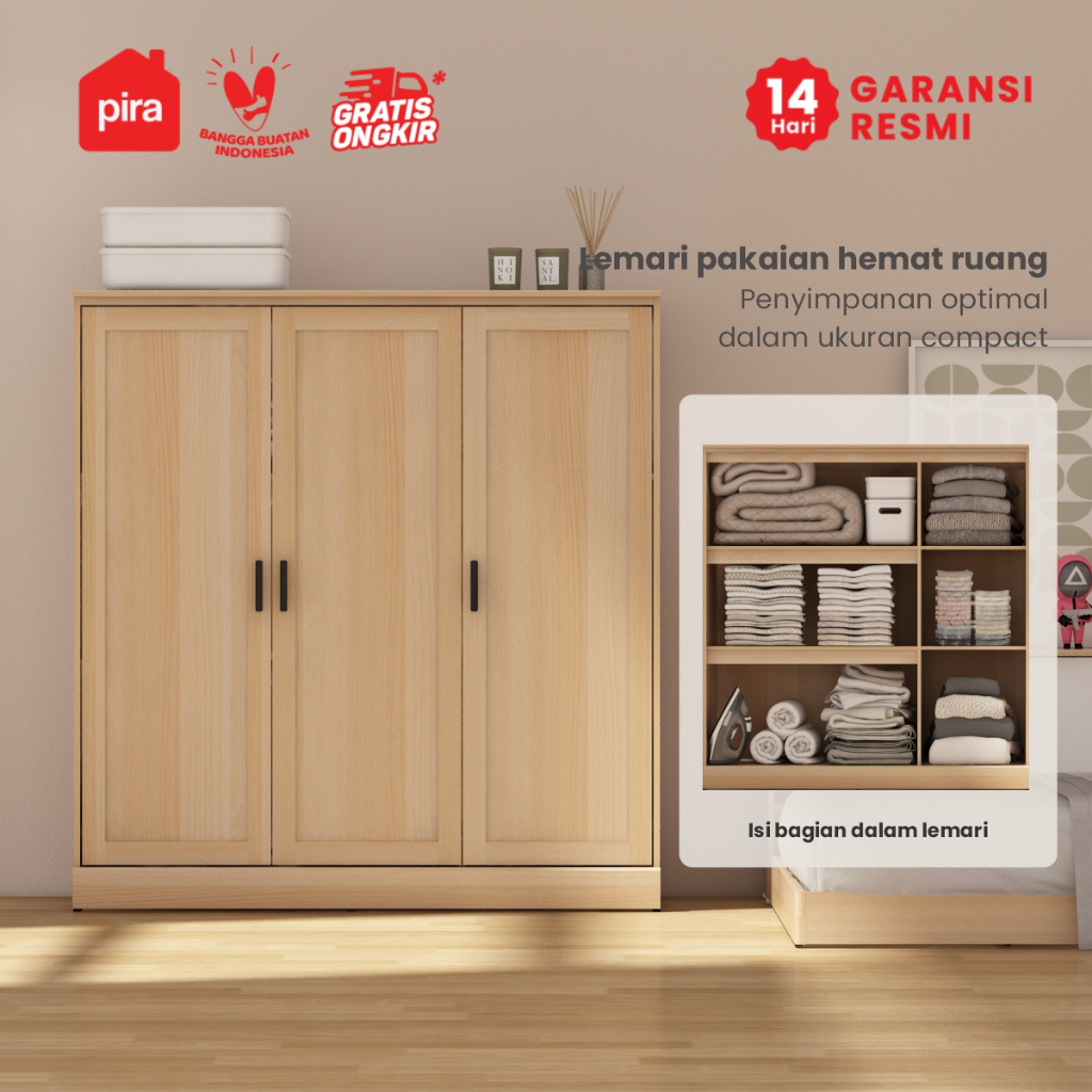 PIRA METROPOLIS - YORK BLS120 Lemari Pakaian Kecil 3 Pintu Full Rak / Lemari Baju