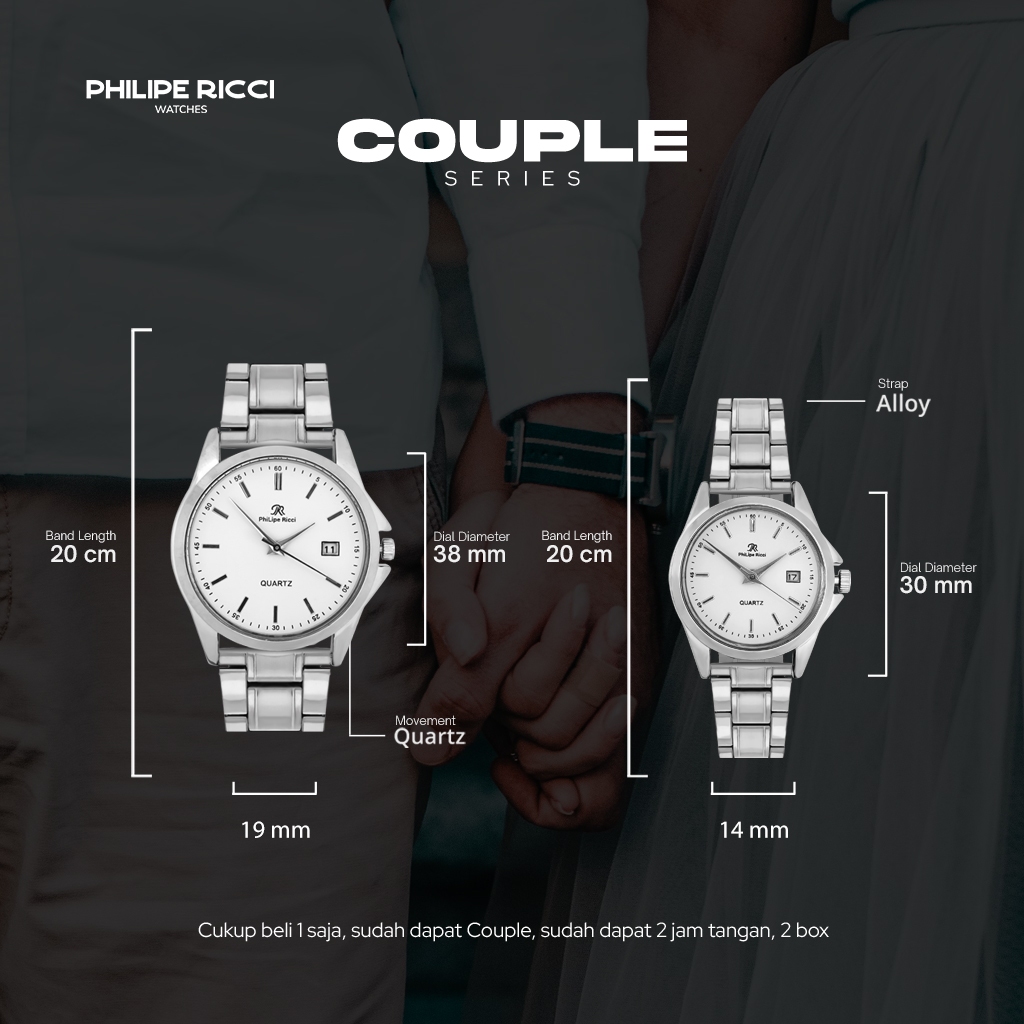 PhiLipe Ricci Jam Tangan Couple Rantai Besi Pria Wanita Terbaru Elegan 7501 Free Box