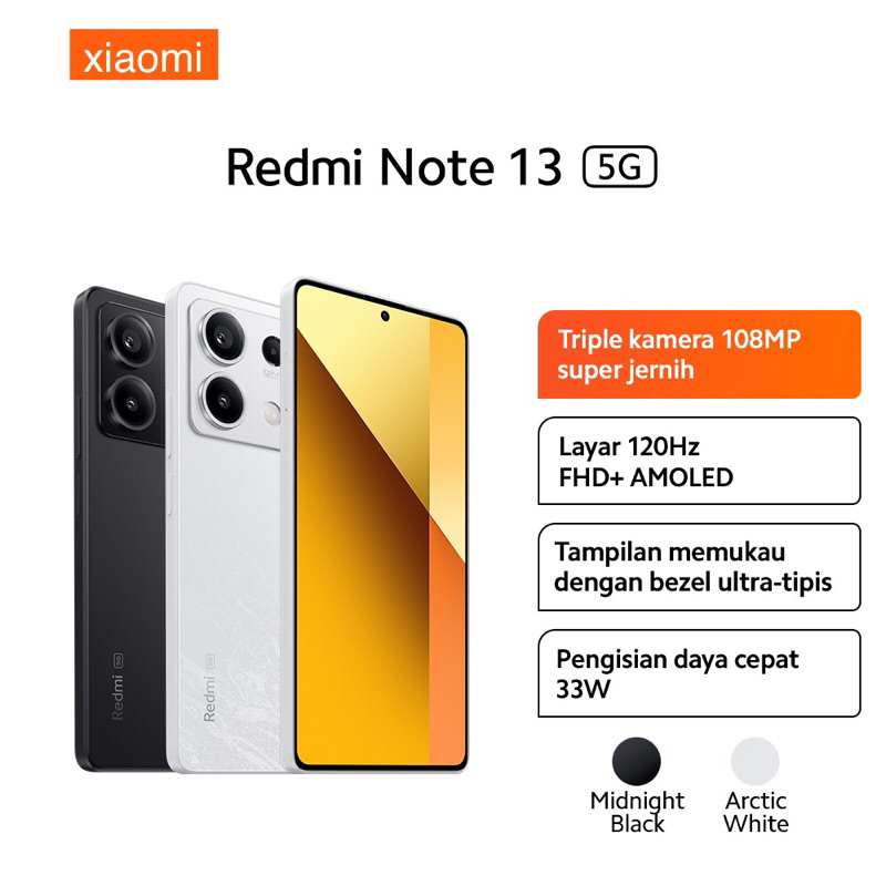 Xiaomi Redmi Note 13 5G [8GB/256GB] Extended RAM 8GB - Dimensity 6080 - 108MP Triple Camera - NFC - IP54 - 6.67" AMOLED Garansi Resmi 15 Bulan