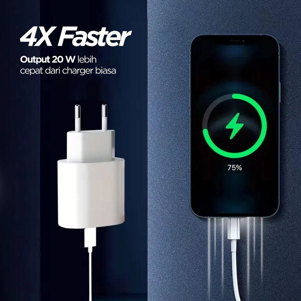 Adapter Standard 20W Apple Original White - For iPhone 11 12 13 14 15 PD Type-C To Lightning Ori Resmi