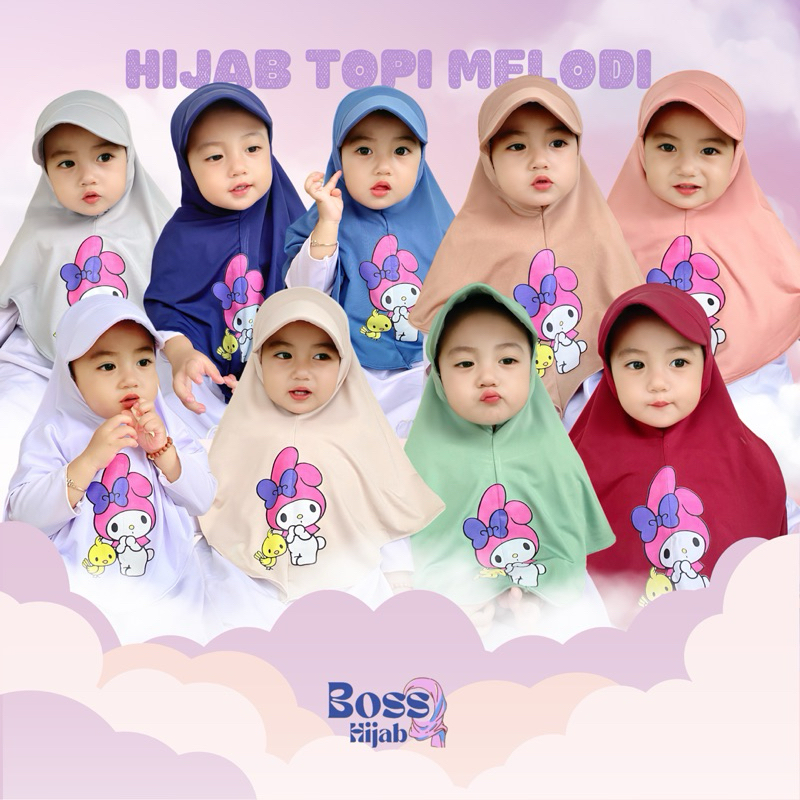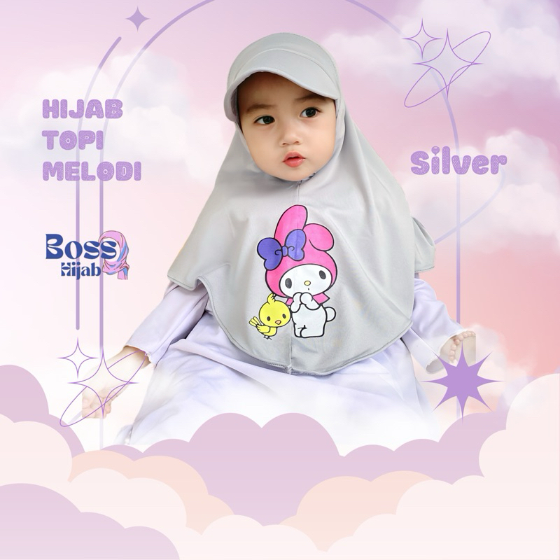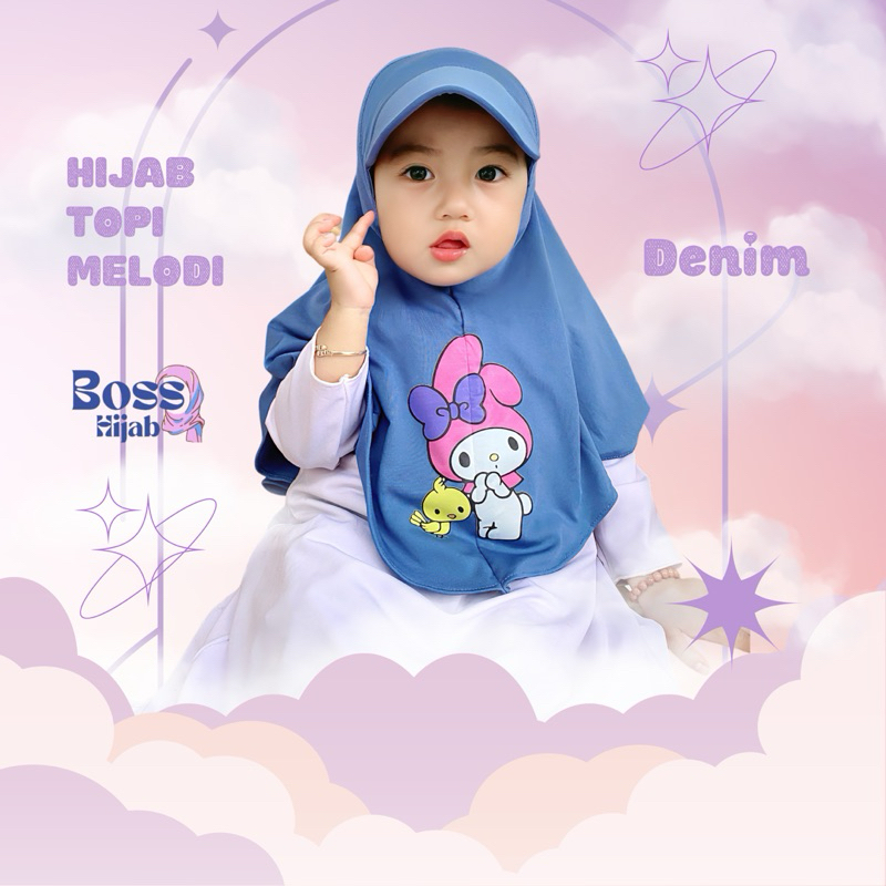 HIJAB TOPI ANAK usia 1 2 3 4 5 6 7 sampai 8 tahun KARAKTER MELODY, hijab topi sport anak lucu
