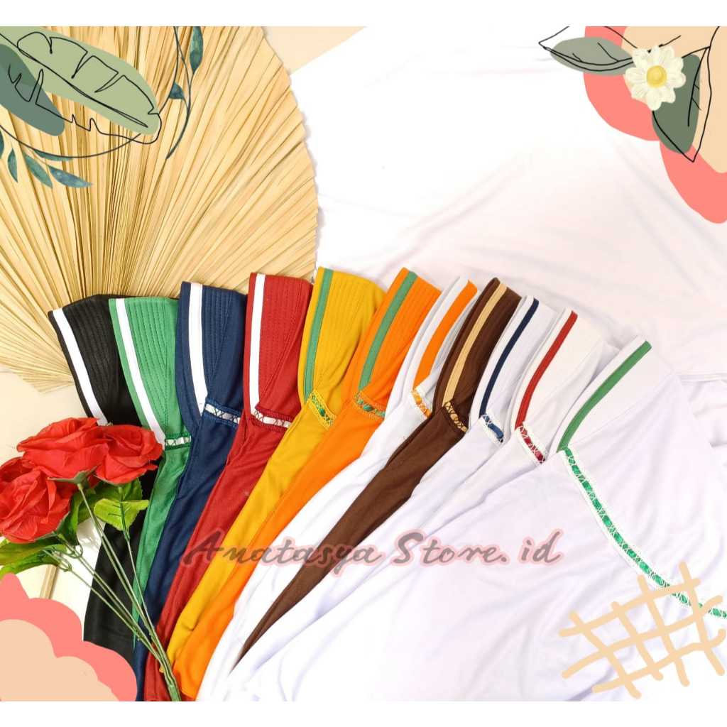 Putih Lis Merah, Putih Lis Hijau, Putih Lis Navy, Putih Lis Orange, Maron Lis Putih, Navy Polos, Green Polos, Black Lis Putih, Oren polos, Mustard Polos, Coklat Polos, Putih Pita Merah, Putih Pita Hitam, Putih Polos, Biru Langit, Ungu Tua, Ungu Muda, Abu Abu, Pink Tua Polos, Pink Muda Polos, Kuning Kenari, Maron Polos, Pink Lis, Cream Lis, Green Lis Putih, Oren Lis Hijau, Navy Lis Putih, Mustard Lis Hijau, Black Polos, Coklat Lis COksu, PinkMuda Polos