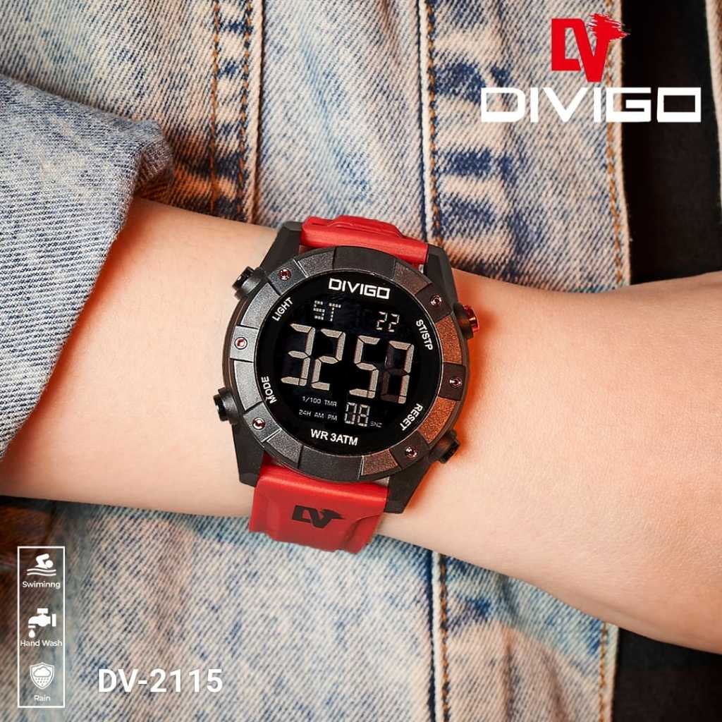 Jam Tangan Pria/Wanita Original DIVIGO DV-2115 Digital Water Resist Strap Rubber