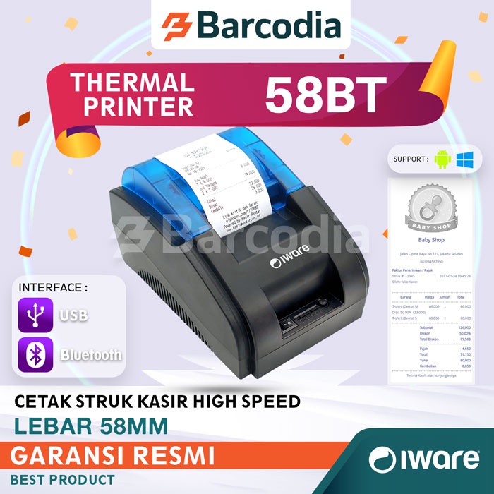 Barcodia Printer Bluetooth Iware 58BT Suport Moka Pos