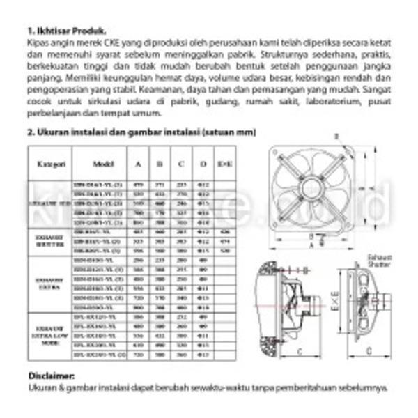 CKE Exhaust Fan Standard 16 Inch ESN-D16/3 380 Volt Kipas Eksos Blower