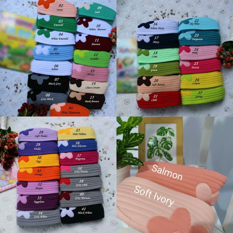01. New Terracota, 02. Ivory, 03. Emerald, 04. White Emerald, 05. Sea Blue, 06. White, 07. Black Grey, 08. Grey Black, 09. Jade, 10. White Maroon, 11. Maroon, 12. Stabillo, 13. Dusty, 14. Choco Cream, 15. Dark Brown, 16. White Navy, 17. Navy, 18. Lime, 19. Green, 20. Soft Brown, 21. Chili, 22. Sky Blue, 23. Turquoise, 24. Pink, 25. Fuscia, 26. Lemon, 27. Spring, 28. Soft Violet, 29. Violet, 30. Egg, 31. Orange, 32. Purple, 33. EggPlant, 34. Grey White, 35. Pale Yellow, 36. Blue Electric, 37. Magenta, 38. Grey Fuscia, 39.Grey Chili, 40. Grey Maroon, 41. Black White, 42. Soft Ivory, 43. Salmon, 44. Lemon Birel, 45. Navy Bluee, 46. Sage Army, 47. Army Sage, 48. Blue ocean, 49.New Sage, 50. Egg Black