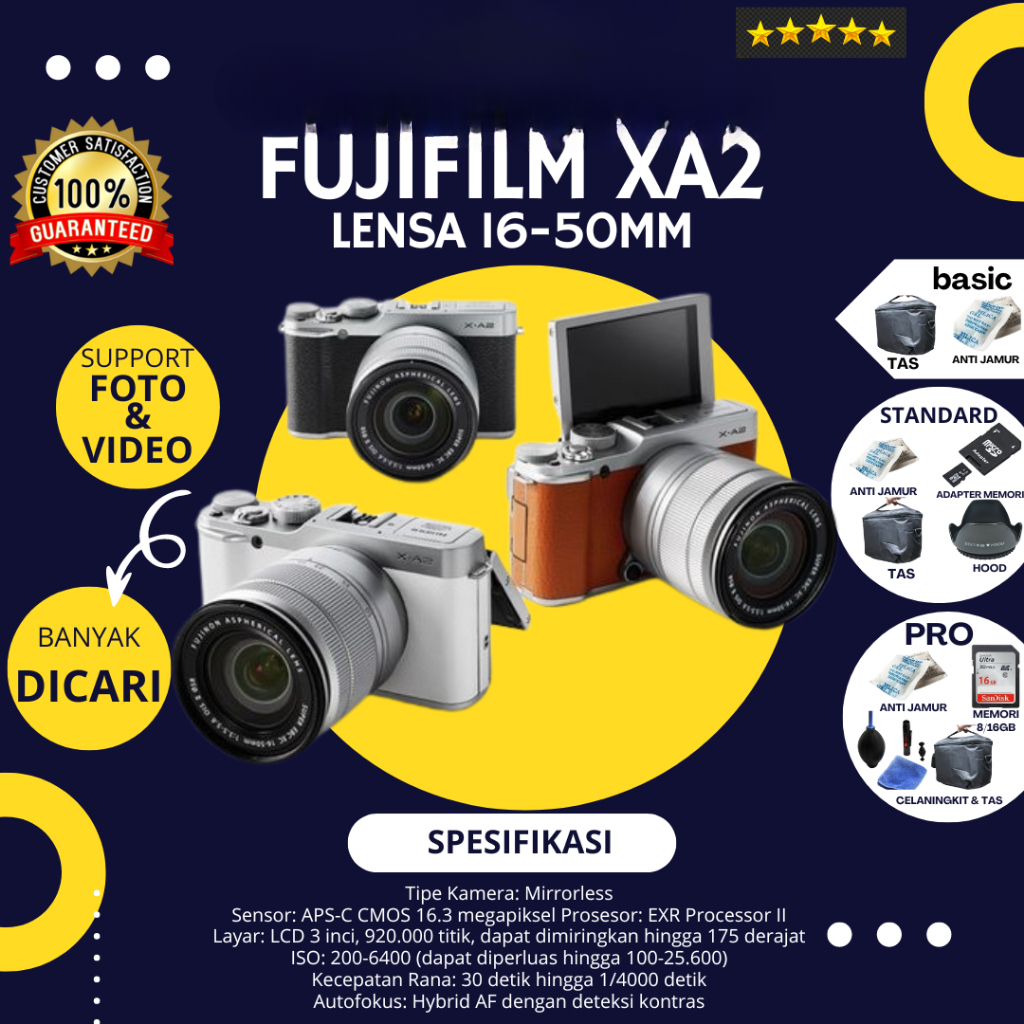 FUJIFILM XA2 Lensa Kit 16-50mm F3.5 Kamera Mirrorless Bergaransi -Vms
