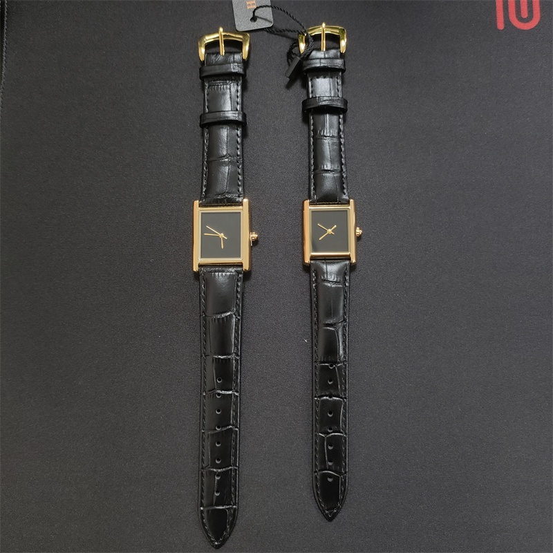 READY STOCK Jam Tangan Unisex Homage Tank De Must Tali Kulit Asli Casing Emas Asli