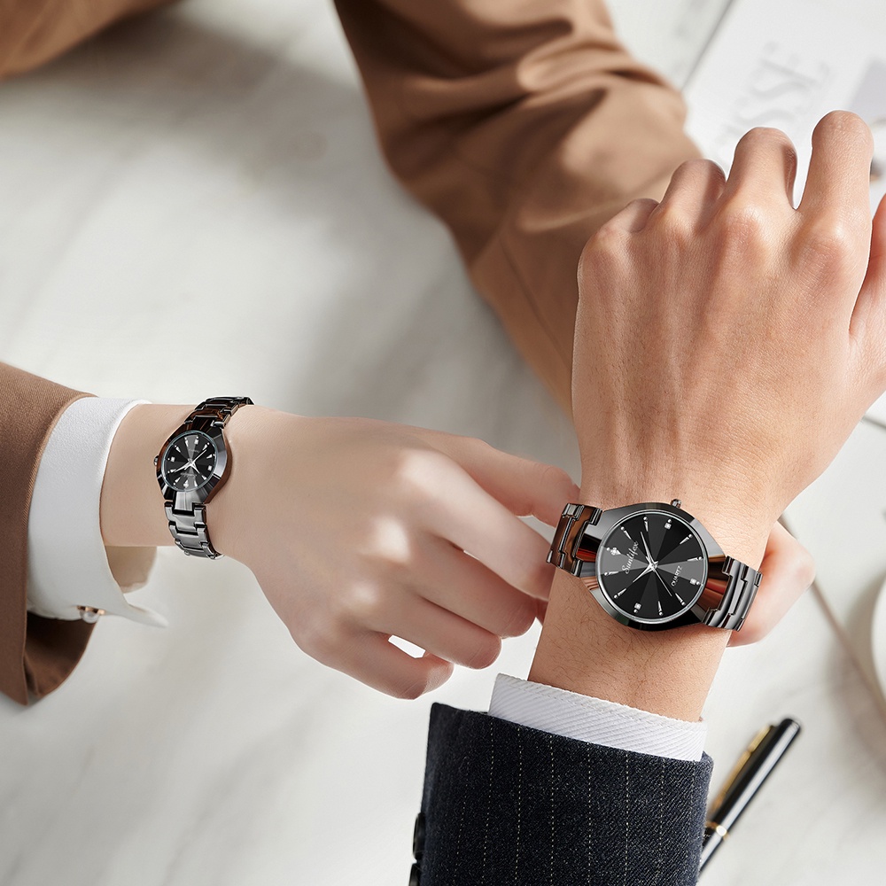 Sunlifex Jam Tangan Couple 9090-M+SL9090-W Stainless Steel Berlian Anti Air Analog Bisnis Kuarsa Jam Tangan Wanita/Pria