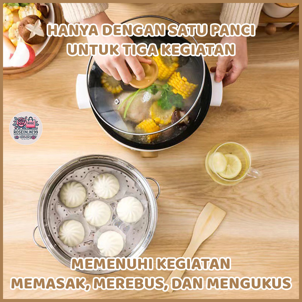 RO Panci Listrik Jumbo 3L Besar + Dengan Kukusan Low Watt Streamer Putih 24Cm