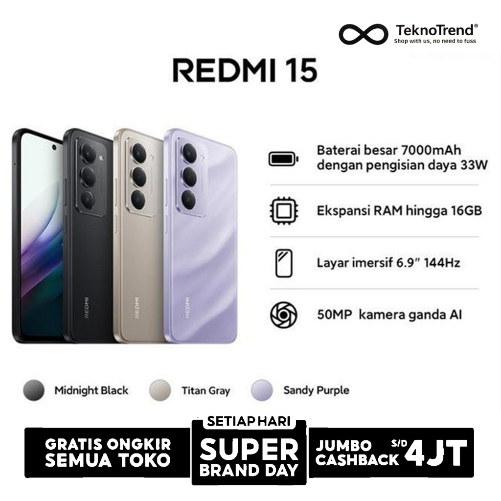 XIAOMI REDMI 15 15C 8/256 8/128 6/128 - HANDPHONE PONSEL ANDROID GARANSI RESMI