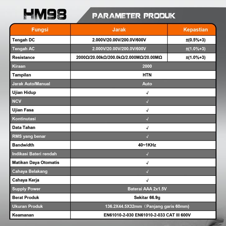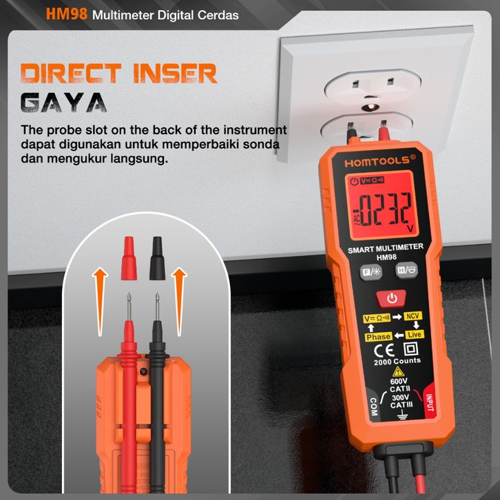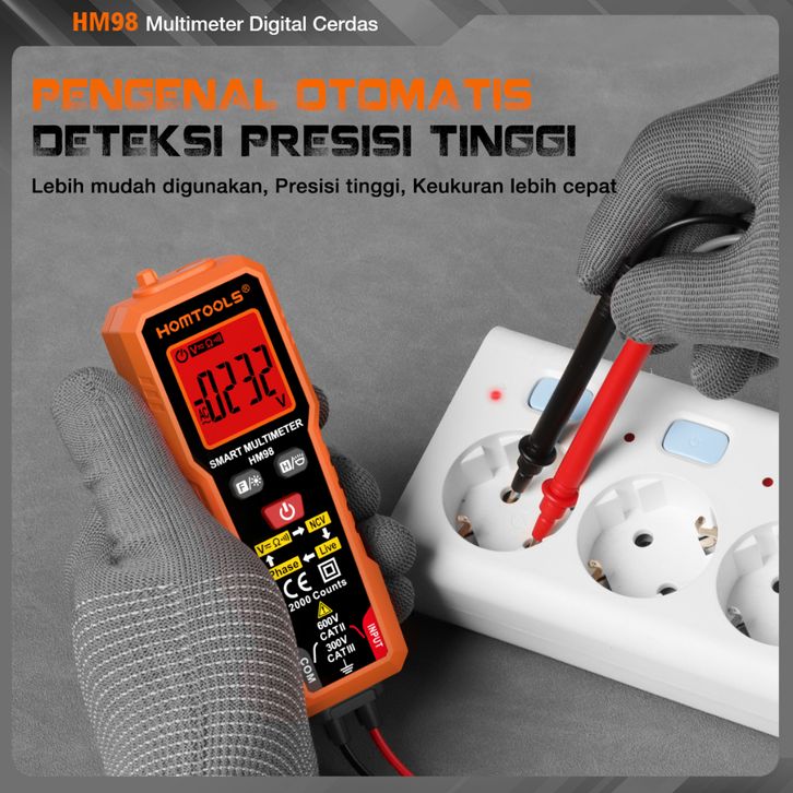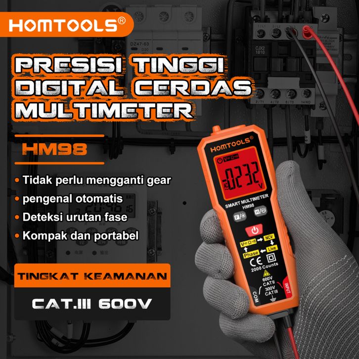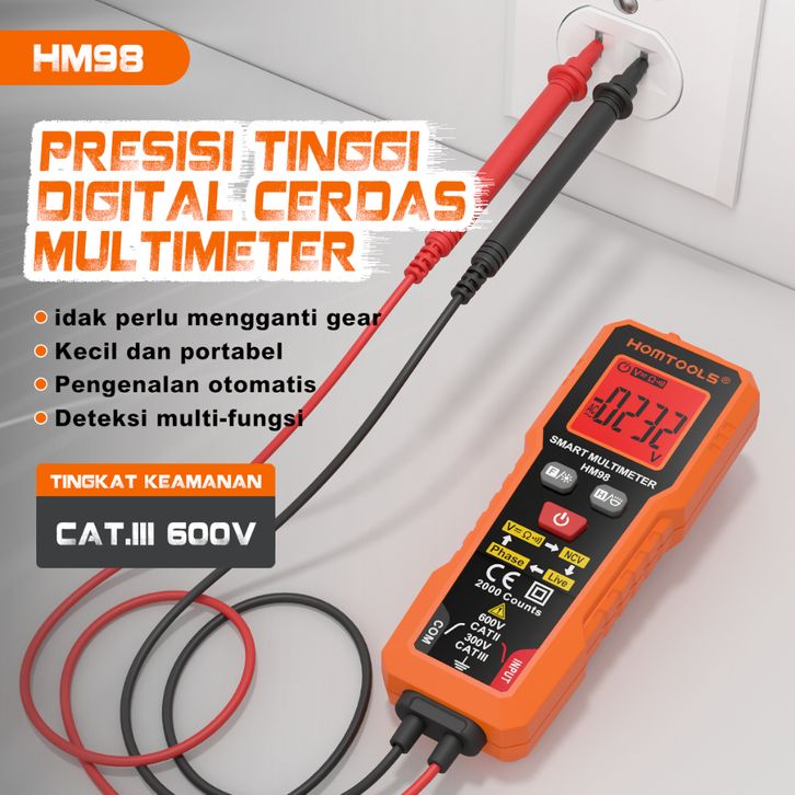 TERMURAH HOMTOOLS HM98 Multimeter Pintar AC/DC Voltage 600V 2000 Kiraan True-RMS Automatic Tester Ohm NCV Ammeter