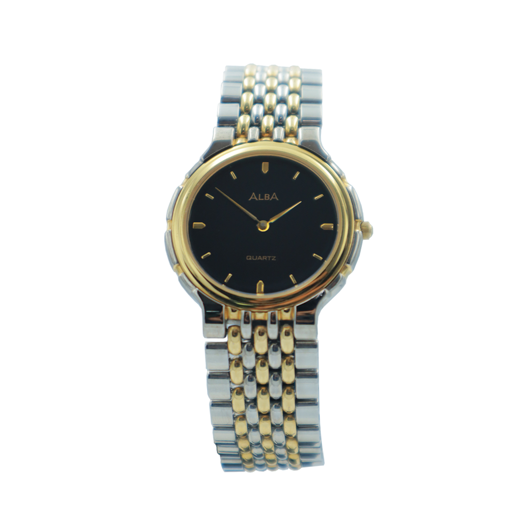 Alba Classic Jam Tangan Vintage Wanita ATA42C / ATA42CX1 Quartz Black Dial Stainless Strap Watch
