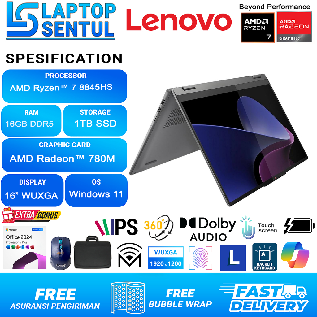 Lenovo IdeaPad 5 2IN1 16 AMD Ryzen 7 8845HS Ram 16GB WUXGA IPS Touch 1TB SSD Windows 11 Luna Grey