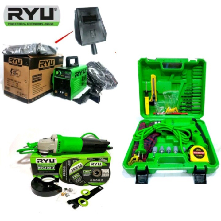 RYU 3 ITEM Paket tukang Mesin Las 450 Watt 120 A + Mesin Gerinda + Mesin Bor Listrik 10mm