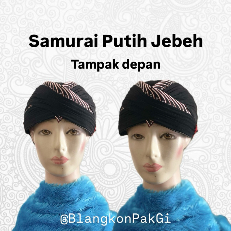 Blangkon Jogja Lipat Samurai Kuning/Putih Variasi Jebeh