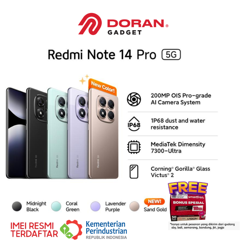 Xiaomi Redmi Note 14 Pro 5G 8/256GB 12/512GB RAM 8GB 12GB ROM 256GB 512GB - Garansi Resmi 1 Tahun