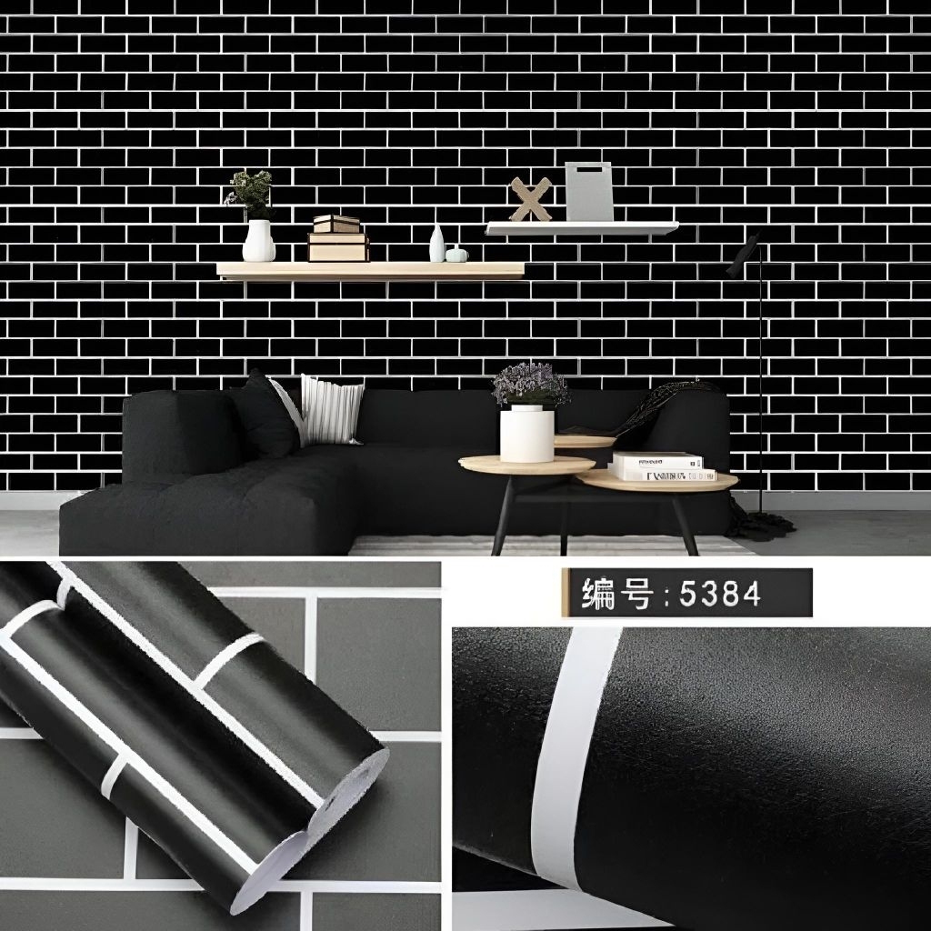 PAKET 5 ROL WALLPAPER DINDING BATA HITAM TERLARIS STIKER KAMAR