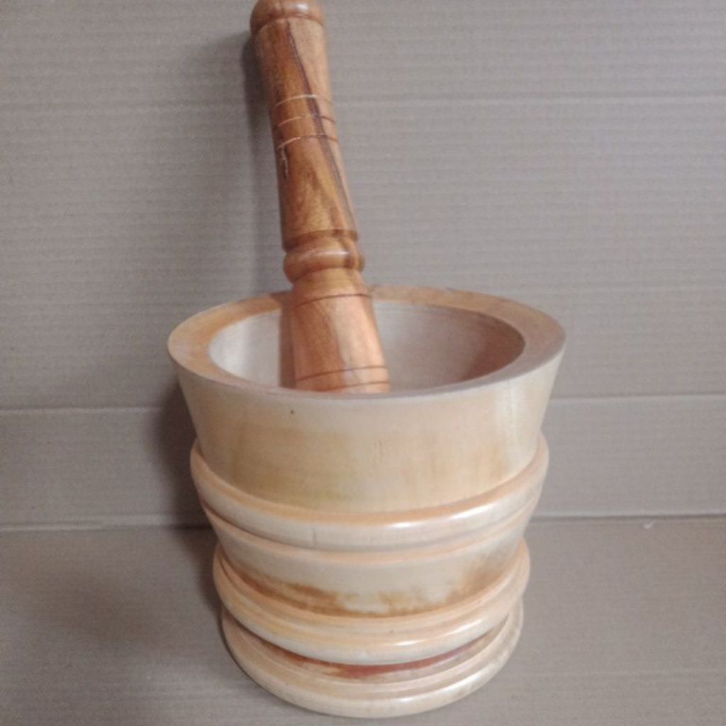 cobek cina bahan kayu jati dan kayu mahoni unggulan kecil besargeratis lemet